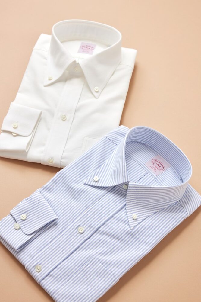 オックスフォード生地のボタンダウンシャツのなかでもベーシックな2色をご用意。無地のホワイトとブルーのロンドンストライプだ。1枚で着てもよし、ブレザーやセーターの中に着てレイヤードを楽しむもよし。定番だからこそ、無限の着回しが可能だ。