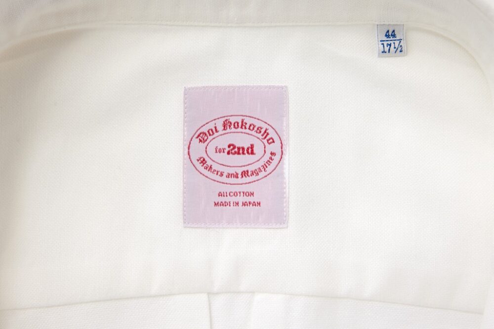 1952年に創業したメイドインジャパンのドレスシャツファクトリー〈土井縫工所〉が2ndとの別注のために製作したオリジナルネームが付く。