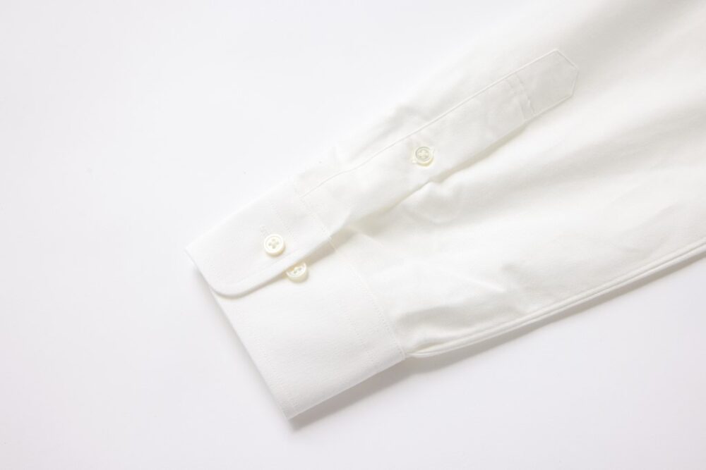 袖の切り込み部分はクラシックな剣ボロ仕様。ドレスシャツファクトリーらしく、ボタンの縫製も丁寧だ。夏場はラフに捲り上げて着るのもよいだろう。