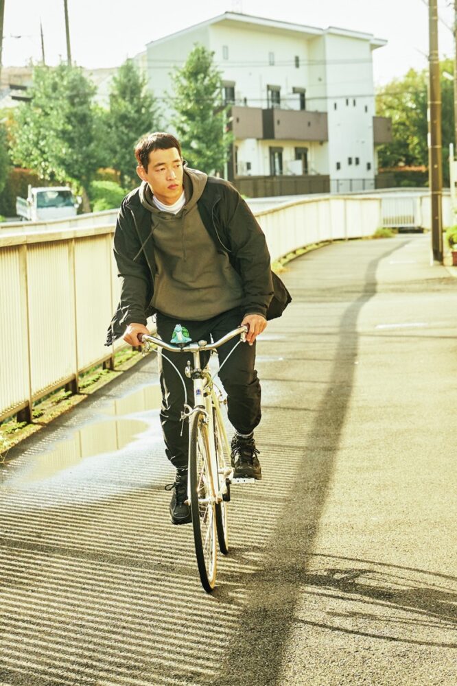 俳優/田中陸さん|1995年生まれ。愛知県出身。2019年から活動を開始。半径20km程度であれば自転車での活動範囲なため、日々の移動は9割が自転車である