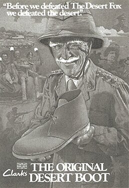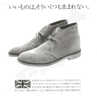 クラークス一族の4代目ネイサン・クラークス。彼が第二次世界大戦中に現ミャンマーに駐屯していた際、友人が履いていたラフなスウェードとゴム底を有したブーツに出会う。それはエジプト・カイロで作られたもので、砂漠地帯に駐屯する南アフリカ師団のアイデアによるものという話を受け、[デザートブーツ]の名で制作。1950年のことである。