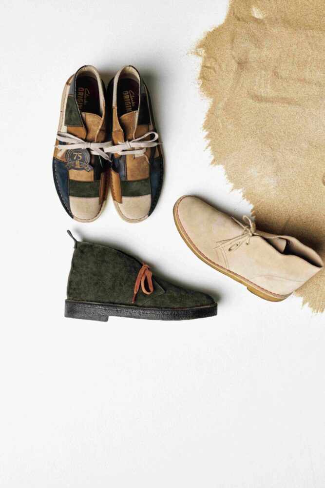 そしてこのたび、そんな[デザートブーツ]の記念すべき75周年を祝うモデルが登場。「ローデングリーン」というカラー復刻とパッチワーク仕様のふたつのモデルは、いずれもユニークで特別感を与えてくれつつも、どんなスタイルにも馴染みやすい。改めて[デザートブーツ]の完成されたデザインに、感服するばかりである。