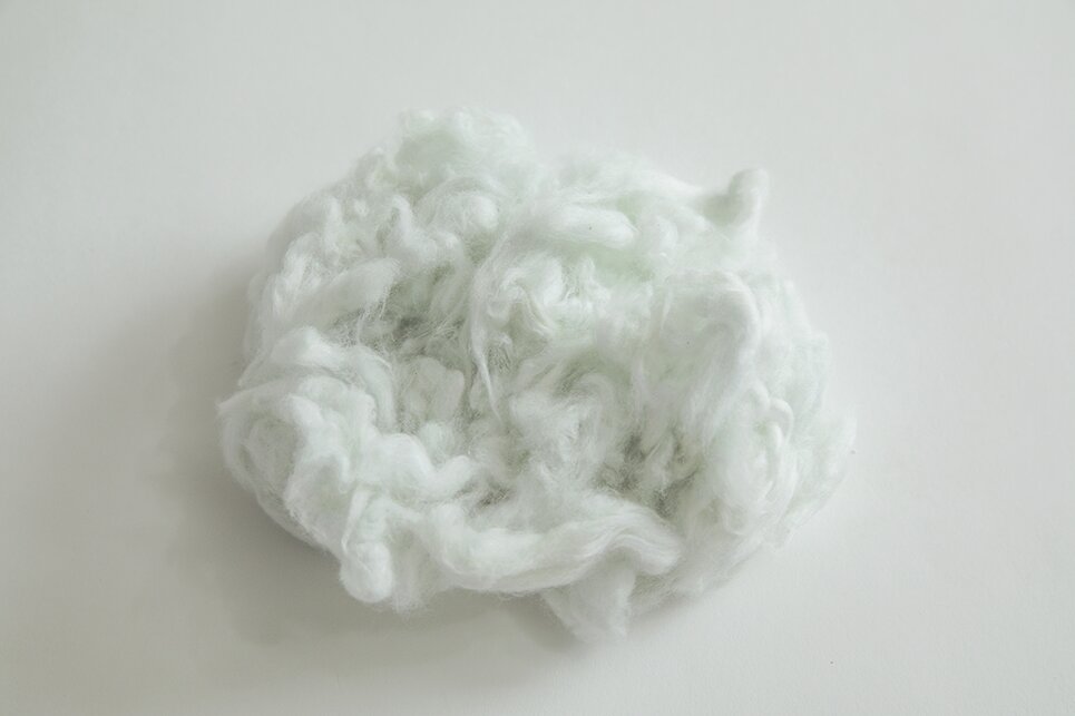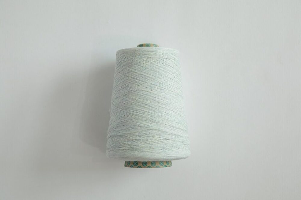 6.混ぜ合わせた後の綿。こちらは「NONDYED」の目玉ともいえる青みがかった杢、“ブルー杢”の綿である。
