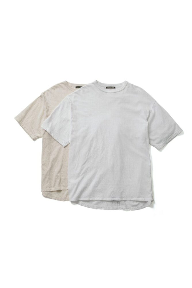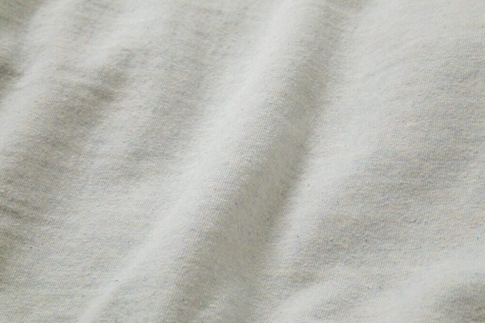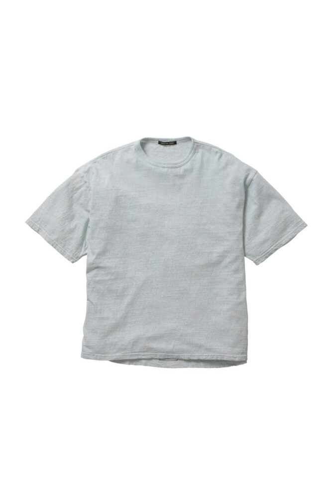 同じくアップサイクル50%の綿から製作した半袖Tシャツ。ブルー杢のほか、キバタ(コットン本来のナチュラルカラー)、ホワイト(不純物を取り除いて漂白)の2色もラインナップ。9900円
