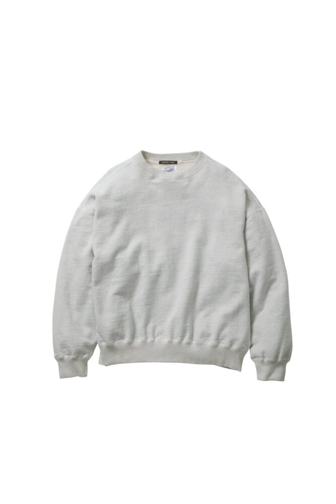 「ライディングハイ」の代表・薄さんが紡績工場と手を組み作り上げた“ブルー杢”のスウェットシャツ。廃棄されるコットン生地の端切れを反毛(クズ生地を特殊な方法で綿に戻す作業)したコットン50%とトルコのオーガニックコットン50%を混ぜて新たに綿から作り、無染色で青みのある杢に仕上げた世界でも例をみない生地を採用している。2026年1月発売予定。2万2000円