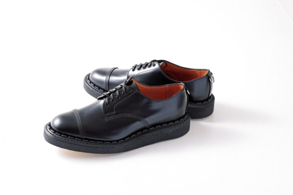 いずれも創業100年を超える両雄の、驚きのコラボが実現。英国国防総省へ長年供給を続けてきた「サンダース」の質実剛健なアッパー。そして、音楽シーンと結びつきパンクスの象徴となった「ジョージコックス」のアイコニックな「クリーパーソール」。ヒール部分にも同ブランドらしいDリングを配し、双方のDNAが等しく融合しあったコラボレーションの理想形。SANDERS.JP公式サイトにて抽選販売。9万3500円(サンダース ジャパンTEL03-6231-0115)