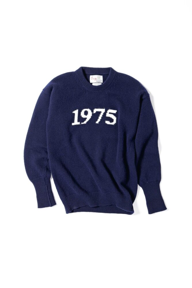 シップスの名品ロゴニットに、「MIURA &SONS設立年の西暦である「1975」のデザインをあしらったデザインも登場。ロイヤル・ワラントの称号を持つ老舗ニットメーカーによって手編み機で丁寧に仕上げられ、ふっくらと柔らかだ。12万1000円