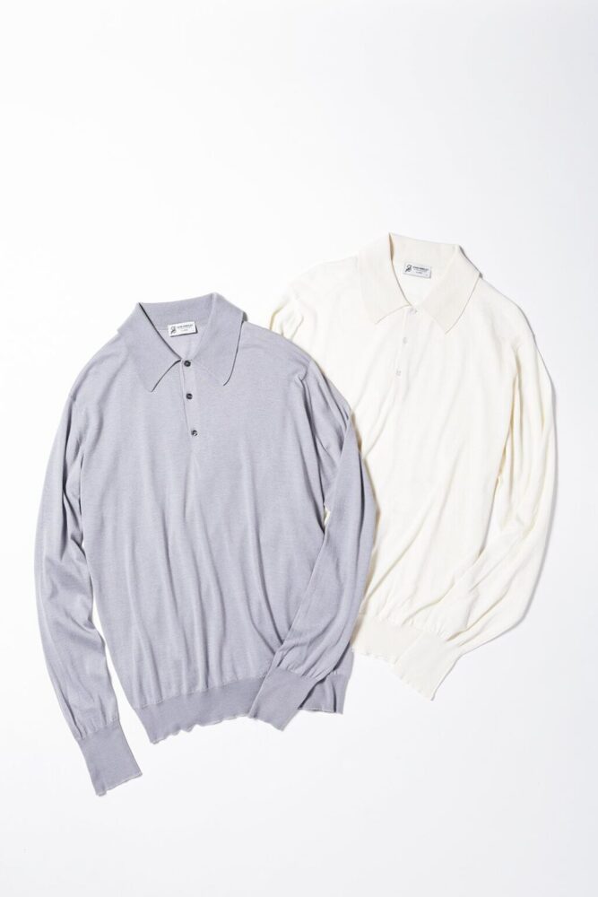 「ジョンスメドレー」定番のモデル[ISIS]をロングスリーブで別注。シーアイランドコットンとメリノウールを混紡した生地は、通気性が良く着る時期を選ばない。やや長めの襟先がクラシックな印象。6万3800円