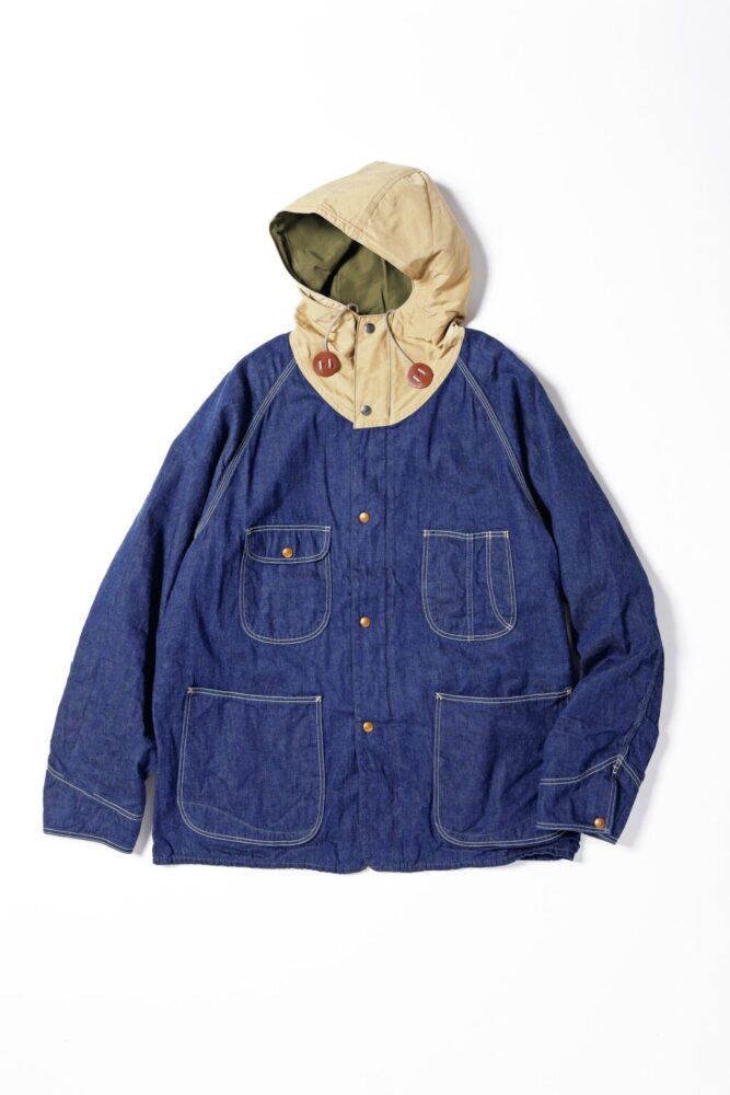 ヘビーデューティアイビーの大定番にして「シエラデザインズ」の代表作である60/40パーカと、「オアスロウ」で人気の50’sデニムカバーオールがドッキング。異素材なのにここまで見事に違和感がないのは、お互いのアイテムがラグランスリーブだという共通点があるからだろう。フロントのVISLONファスナーやレザークッキーなど、ディティールもかなり本格的。7万9860円(base denim products Inc.TEL0798-74-8106)