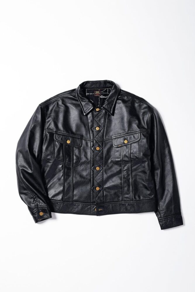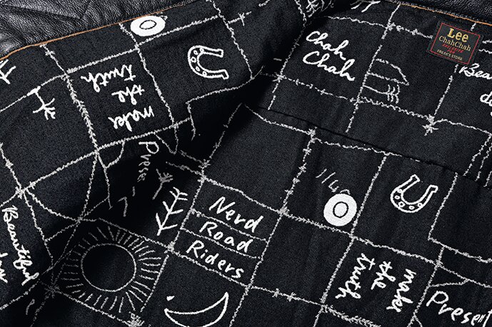 101ライダースジャケットをベースにレザーで仕立てた特別モデル。裏地には織物で有名な桐生産の二重構造のジャカードを採用し、南米の空気感をモチーフにアニバーサリー的意匠を表現。さらにコラボならではのトリプルネームを配し、希少な赤タグを採用。通常別注では叶わない仕様が盛り込まれている。10月中旬発売予定。16万1700円(フリークス ストア渋谷TEL03-6415-7728)