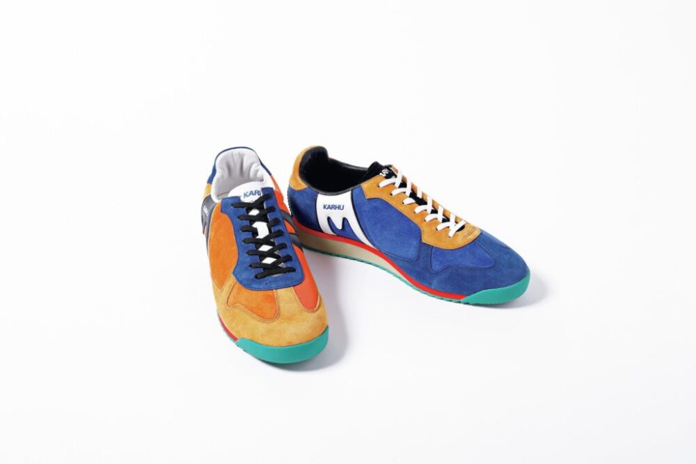 ブランド初のコラボはカラフルな配色が魅力のランニングシューズ。フィンランド発の老舗スポーツシューズブランド「カルフ」の大定番[メスタリ]をベースに、スウェードとメッシュをランダムに配したアッパーデザインを採用している。これだけ多様な色が使われているのにバランスがとれており、さすが色使いが絶妙だ。2万2000円問い合わせ/エンジニアド ガーメンツTEL03-6419-1798