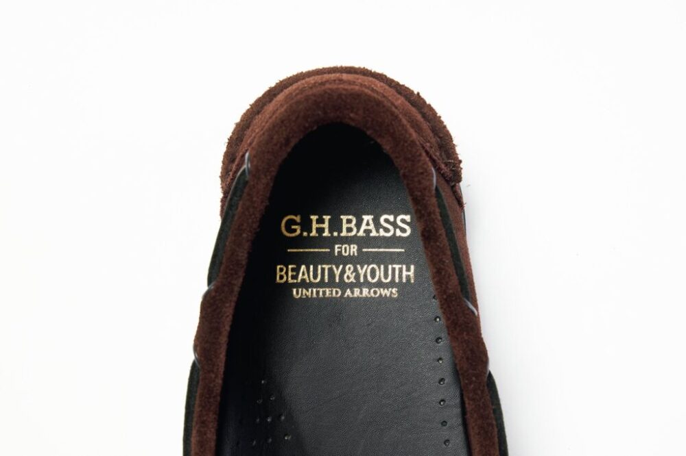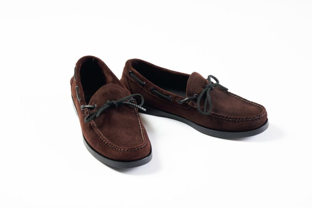 ローファーの元祖「ジーエイチバス」が過去に生産した隠れた名作[ウェブスター キャンプモック]をブラウンスウェードで製作。革靴のデザインのなかではかなりカジュアルなモカシンシューズとシックなダークブラウンというバランスが絶妙な塩梅だ。ダウンベストやコーデュロイパンツのようなヘビーデューティなアイテムとの相性も申し分なし。2万9700円(ビューティー&ユース 丸の内店TEL03-6212-1500)