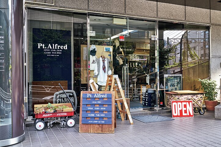 日本におけるアメカジブームの礎を築き上げたリビングレジェンドの人生を深掘りする人気連載「ザ バイオグラフィ」のナビゲーターとして、はたまたスナップや愛用品取材など業界人取材企画の常連として。本誌にとって欠かせない存在の本江さん。“街のチノパン屋”として、恵比寿に「Pt.アルフレッド」をオープンしたのが、1994年のこと。当初は自身のオリジナルのチノパンと少量のセレクトアイテムのみでスタートしたのだという。