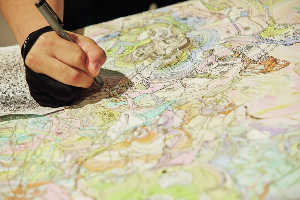 ファッションの現場では「奥田雄太を消す」ことが求められました。ブランドや会社に合わせて服を作るから、自分の色を出さないのが正解。でもその経験のおかげで、アートでは真逆のことを意識できるんです。つまり「自分を出す」こと。ファッションとアートの違いを身をもって知ったからこそ、今は自分の素をさらけ出して絵に込めることができるんです。