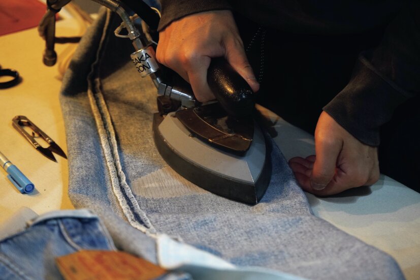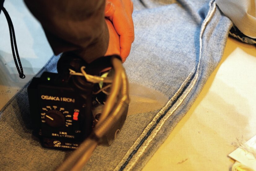 アイロンで接着芯を貼り付ける。平らな場所でゆっくりと、歪みが出ないよう丁寧にかけることが、きれいなお直しへの近道だ。