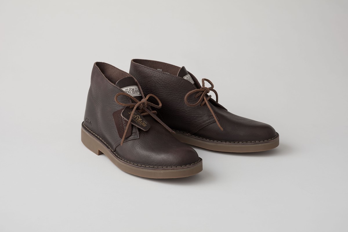 プレミアムレザーアッパーを使用し、75周年を記念した特別仕様として、ブランド創業200周年を祝う「200 Year Anniversary FOB」と、環境に配慮したベジタブルタンニングレザーの「Clarks FOB」をダブルで付属。シュータンには200周年の記念タグをあしらい、節目の年を象徴するデザインに仕上げた。
