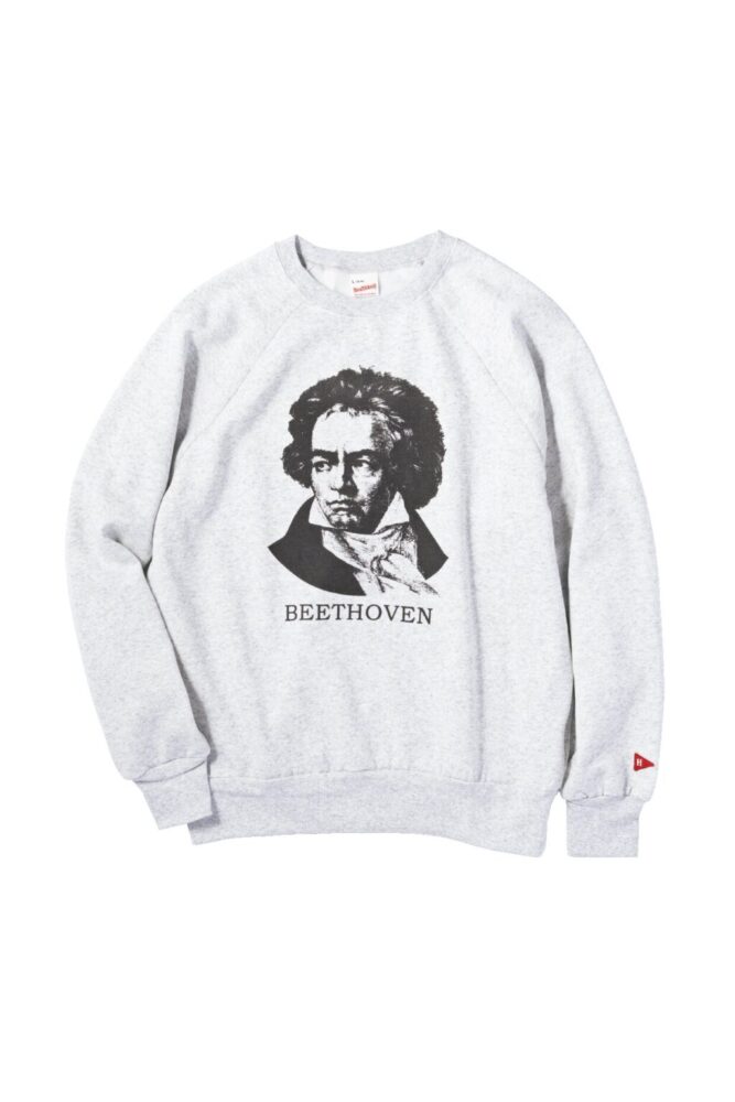 1980年代のアーカイブをベースにした、古着市場でも非常に人気の高いベートーヴェンがプリントされたスウェット。染み込みプリントがフロントに大きく配され、ヴィンテージ級の存在感。6930円