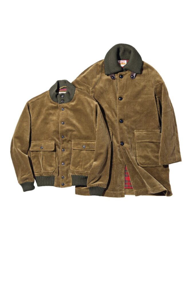 1960年代後半に展開していた[スパニッシュカラーコート]を畝の質感まで再現。ブルゾン型も展開する。褪色した風合いが魅力。ブルゾン4万9500円、コート6万8200円