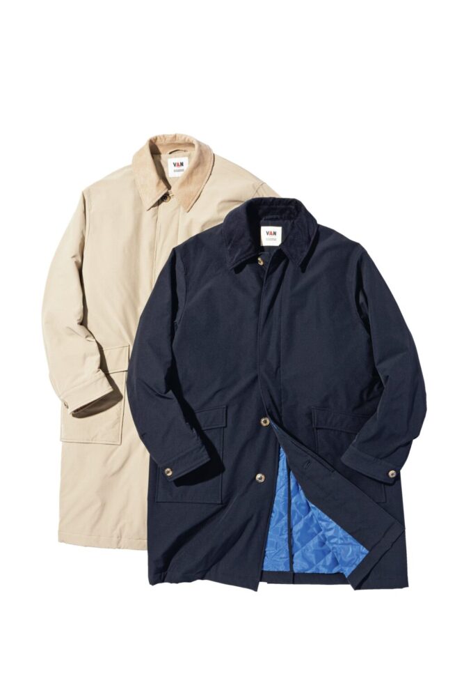 中綿を搭載した軽量かつ防寒性も高いロングコート。ベージュとブラックの2色展開で、前者がレッド、後者はブルーの裏地がアクセント。コーデュロイ地の襟もクラシカル。6万9300円