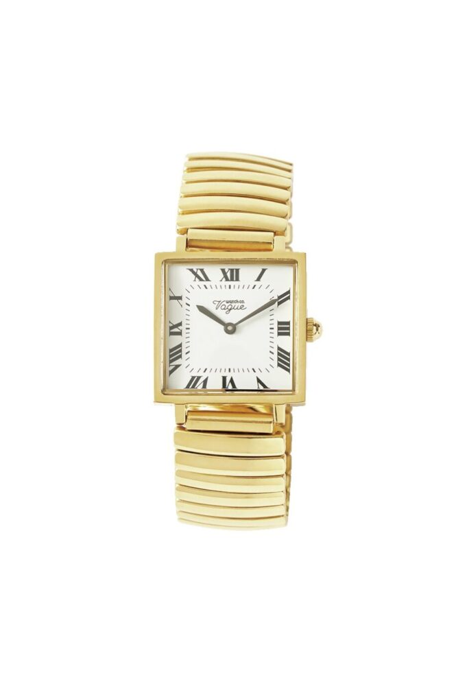 日本製クォーツムーブメントを搭載したスクエア型。ミニマムな本体ケースに対して厚みのある風防ガラスを組み合わせることで端正かつ存在感のある表情に。コマの繋ぎ目がバネ式のエクステンションベルトによって着脱も容易。3万8500円