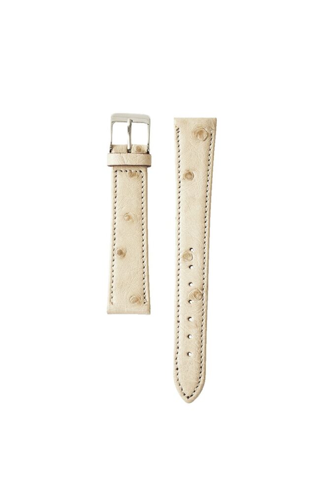 随所にみられるクイルマークと呼ばれる羽毛の痕の突起が特徴的なオーストリッチレザーを採用。エキゾチックレザー特有の豊かな表情に加えて、クリーンで軽快な印象のホワイトとベージュの中間に位置するようなカラーが絶妙だ。1万4300円