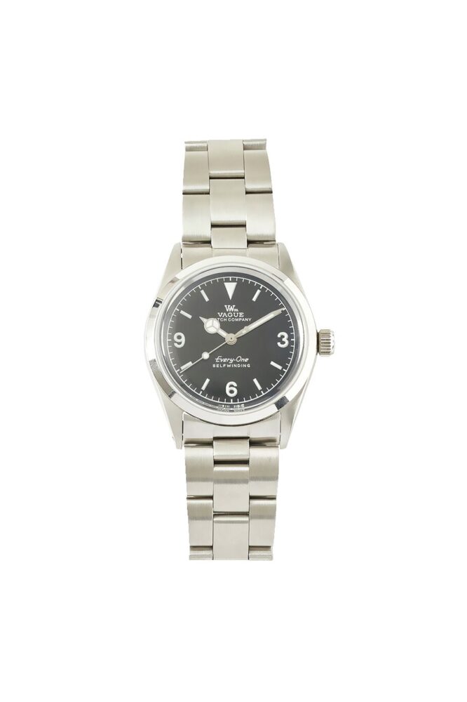 1950年代に誕生した探検家のために開発された名作がベース。無駄のないシンプルなデザインは、[エヴリィワン]というモデル名の通り、様々な人、スタイルにマッチする。シックなブラックの文字盤にはミラー仕上げを施している。6万9300円
