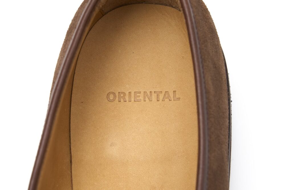 「苦痛にならない革靴」をコンセプトに、ドレスシューズからカジュアルシューズまで幅広く展開する「オリエンタル」。革靴の産地・奈良県の工場を拠点とし、伝統的な革靴の製法とスタイルを追求した革靴を製造し続けているブランドです。今作はそのなかの定番モデル[アルバース]をベースに別注を依頼しました。