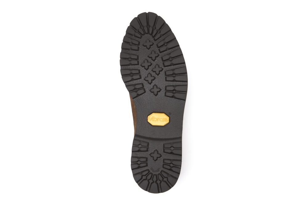 起毛感のあるラフアウトスウェードに合わせて、アウトソールはドレス靴らしいレザーソールではなく、アウトドア色の強いビブラムソールを採用。アッパーとのバランスも考慮し、Vibram#528Kというボリュームのあるソールを採用しています。雨の日にもガシガシ履くことができる点も嬉しいポイントです。