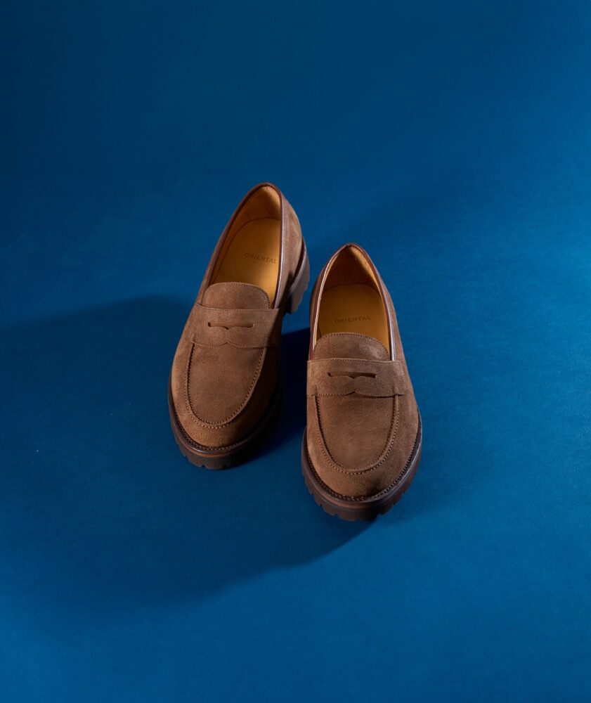 高品質な素材と日本人に合った木型を使用した高品質な革靴を提案する「オリエンタル」の定番モデル[アルバース]をベース に、毛足の長いラフアウトスウェードに素材を変更。端正なローファーでありながら、どこかアウトドア靴のような武骨さも兼ね備える汎用性抜群の1足に仕上がりました。