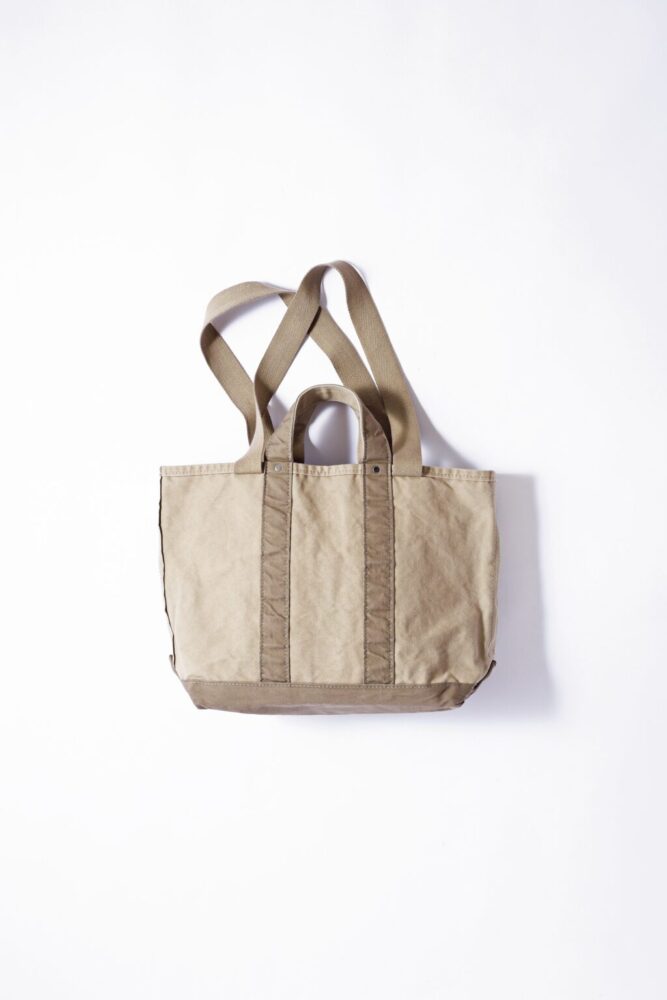 バッグには機能性に加えて装いのひとつのピースとしての役割も求めたい。そんな服好きにぴったりなのが「テンベア」定番のマーケットトートをベースに、エムエイチエル.らしいヘリンボーンテープを肩掛け用ハンドルに採用したこちら。洗いをかけたキャンバスの表情も◎。2万6400円(MHL. TEL03-5785-6445)