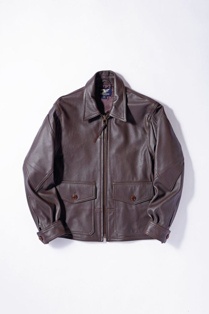 米海軍にて1931〜38年に採用されたフライトジャケット[G-8]。コックピット内での運動性を高めるための脇下のマチや、サイドから入れられるハンドウォームポケットなど、機能的なディテールが充実。当時を再現したゴートスキンの表情も堪らない。25万3000円(クローチアTEL03-6455-0548)
