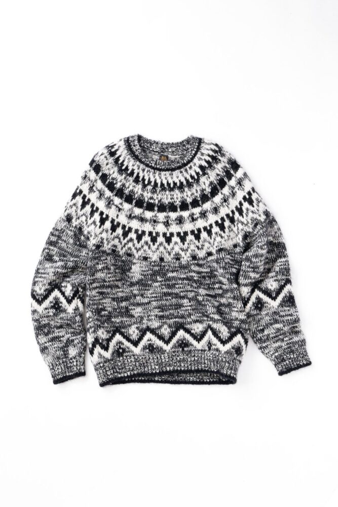 モヘア、アルパカ、ウールをブレンドした糸に太番手のスラブヤーンをミックス。起毛感と凹凸感が特徴的なノルディック。3万9600円(バトナー TEL03-6434-7007)