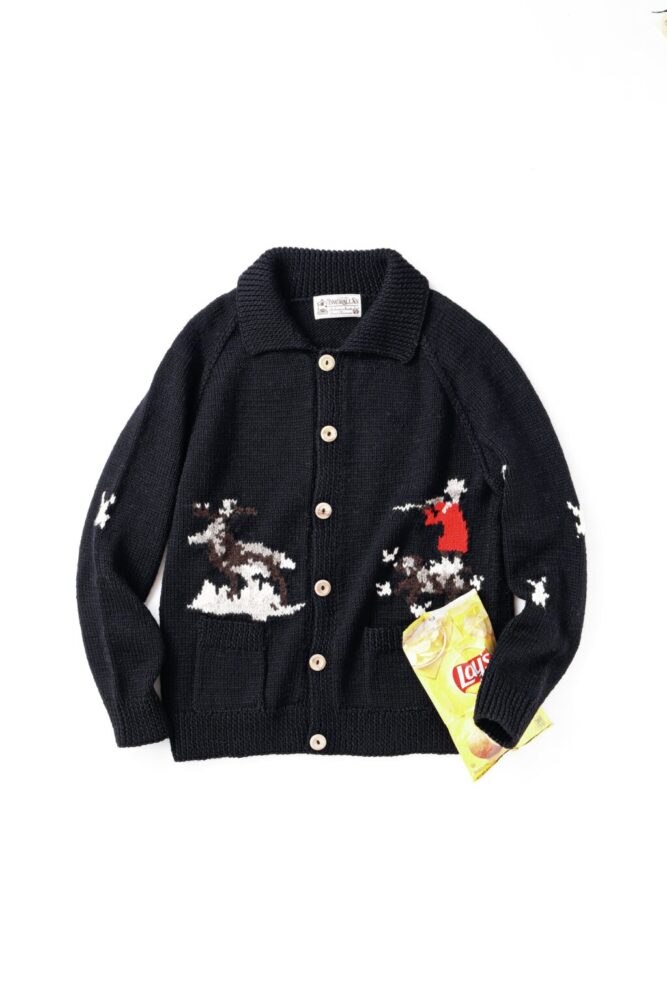 イギリス生産にこだわり、高品質なものづくりを続ける。黒ボディに白のラインが映えるクリケットセーター。1万9910円(セムインターナショナルTEL092-622-5221)