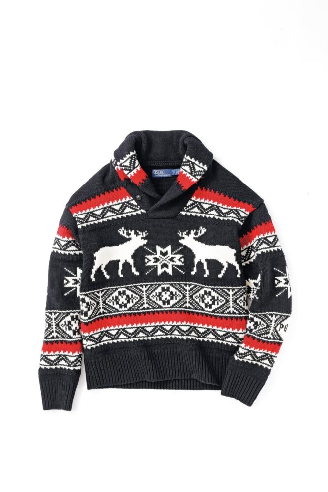 黒のボディに映える赤と白の配色がクラシックでカントリーな雰囲気を演出。両胸に配されたムース柄が特徴的。8万2500円(ラルフ ローレン TEL0120-3274-20)