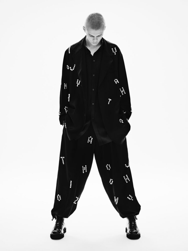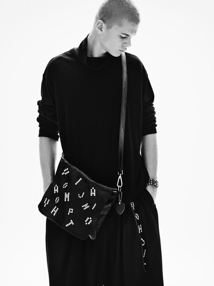 本コレクションでは、トラッカー型デニムジャケットに手作業によるスタッズワークで“YOHJI”の文字を表現。また、ウールギャバジン素材のジャケットとパンツによるセットアップにもHTCの装飾加工を施し、1点のみのエクスクルーシブアイテムとして制作している。熟練職人の手作業によって生まれる個体差や温かみのある表情が魅力である。さらに、スタッズショルダーバッグ、スタッズベルト、スタッズブレスレットなどのアクセサリーも展開しており、ヨウジヤマモトのデザインとHTCの職人技が融合した特別なラインナップとなっている。