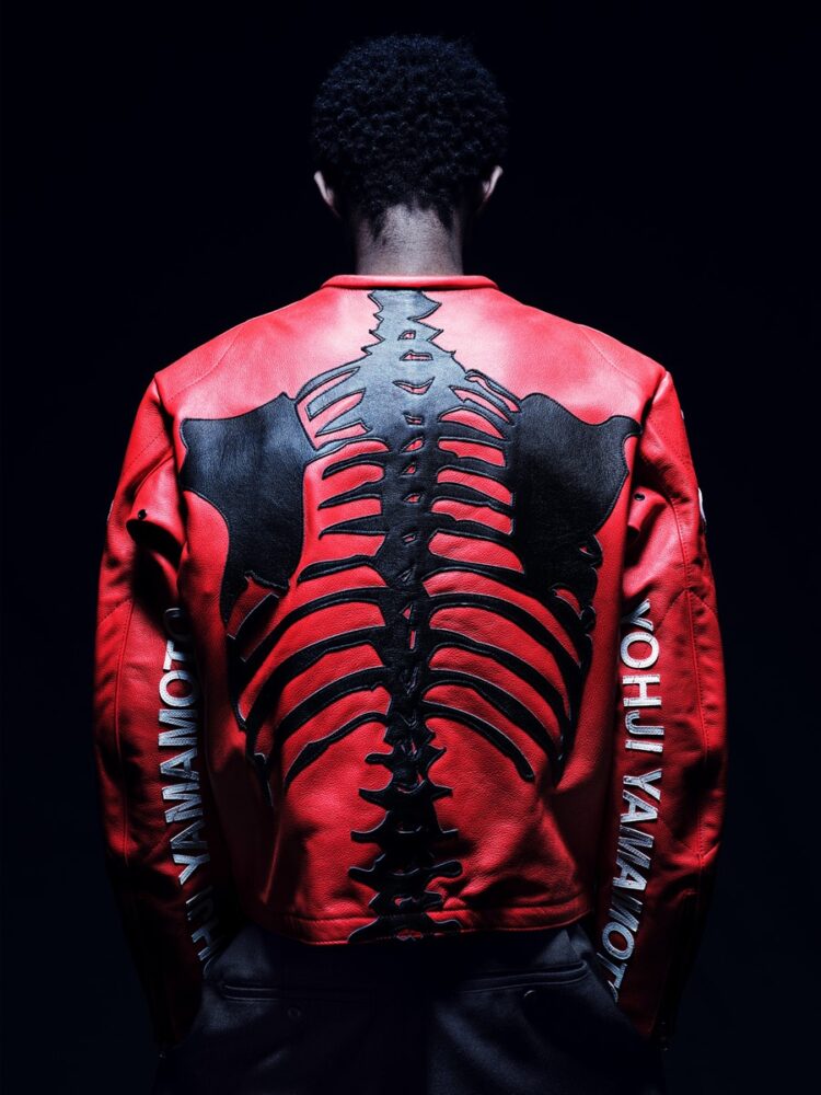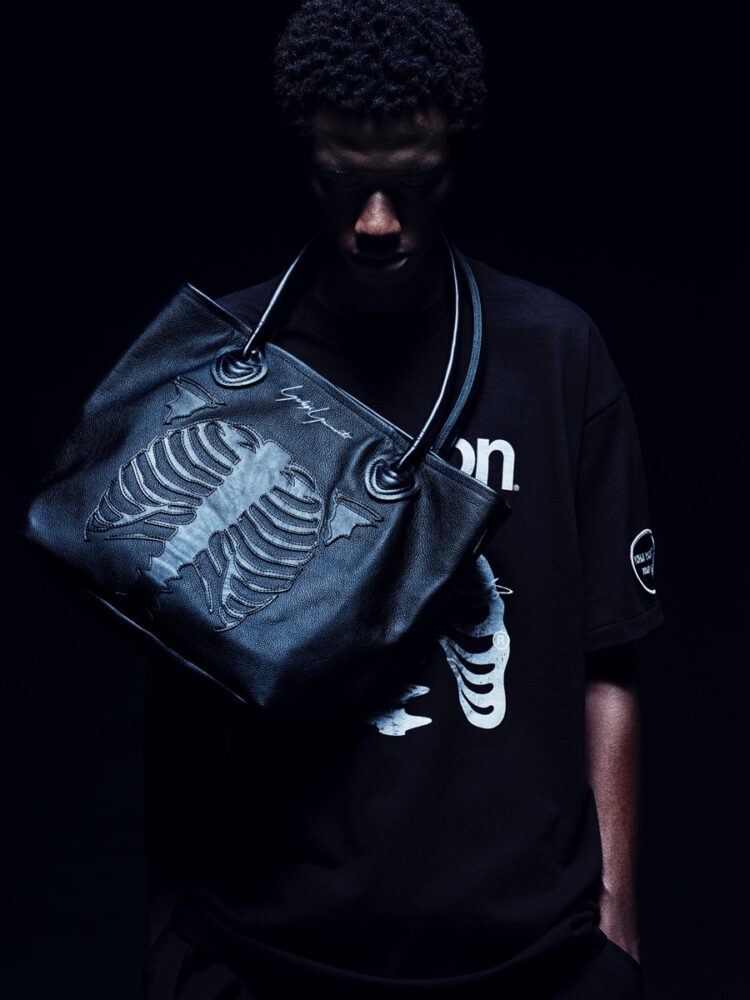 本コレクションでは、VANSONのクラシックなプロダクトをベースに、BONEデザインをYohji Yamamoto POUR HOMMEの視点から再構築したジャケット、バッグ、グローブを展開する。ジャケットはシングルライダースに立体的な骨モチーフのダブルレザーパネルを配置。カラーレスデザイン、フロントジップ、バックル、外ポケット、スリーブ肩位置のオーバルワッペンなど、VANSON伝統の仕様を採用している。BONE柄のトートバッグは、ハンドルの長さを調整し、フロント・バックパネルやレザーパッチの配置を変更した特別仕様。いずれのモデルにもBONEグラフィックとYohji Yamamotoのネームを施している。ジャケット購入者には限定ノベルティーとしてBONE TEE SHIRTを用意する。