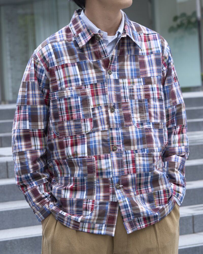 アイビーリーグの学生たちも好んで着ていた、アメトラ王道の素材であるパッチワークマドラス。粗野な風合いがカバーオールの武骨な雰囲気ともマッチし、軽く通気性の良い生地は初夏の軽羽織りにもぴったりです。