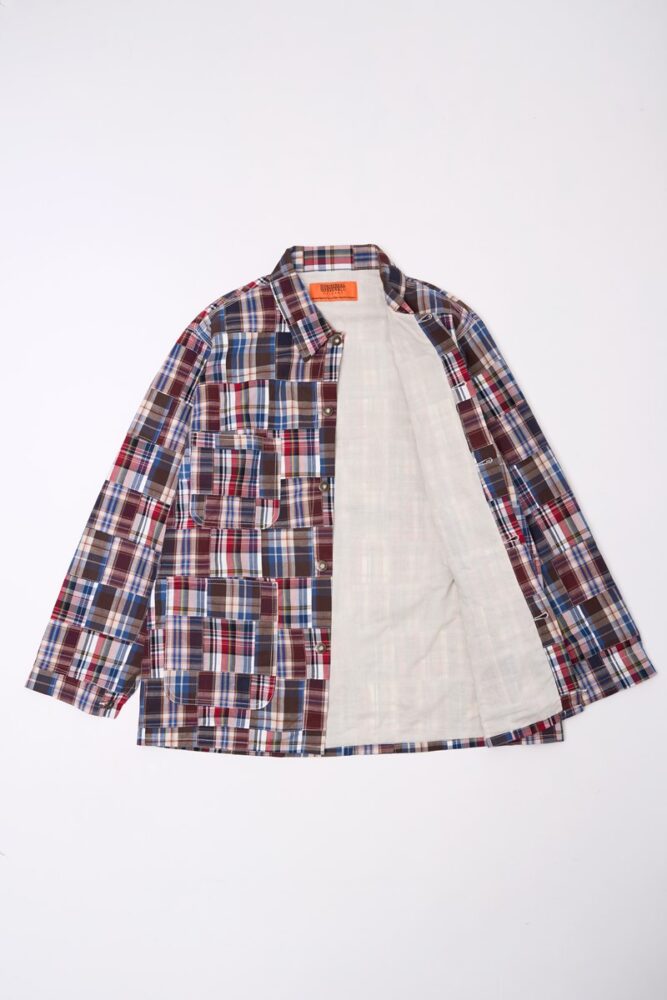 アメリカ・シカゴ発のリアルワークウエアブランド「ユニバーサルオーバーオール」定番のカバーオールを、アメトラ王道のパッチワークマドラス生地で別注。4つのパネルポケットを備えた実用的な仕様はそのままに、2ndらしく旧きよきアメトラのムードが漂う1着に仕上げました。
