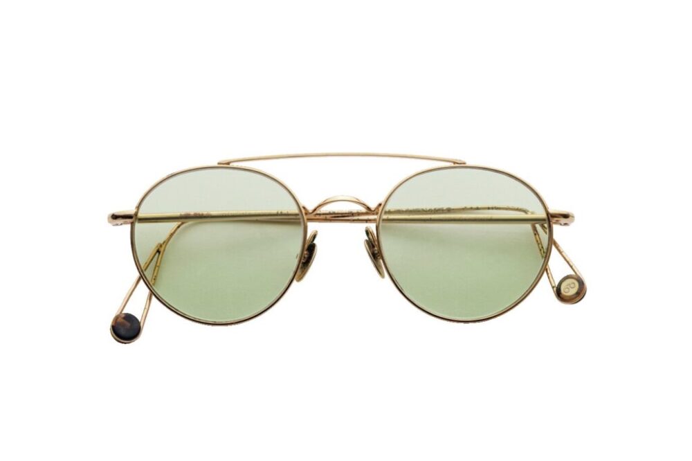 「昔のカルティエとかでありそうなクラシックにしてヒネリが効いたデザイン。軽さとピアスとの相性を考えてゴールドのメタルフレーム。薄めのレンズカラーを選ぶのも自分流」