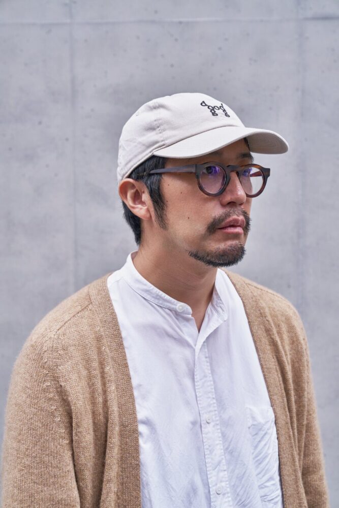 「キャップとメガネのコンビについて思い返してみれば、かつての会社でプレスの任務を命じられた時、自分の顔を覚えてもらうためのコミュニケーションツールとして組み合わせを考え始めたのが最初でした。一番のマイルールは、フォルムですね。キャップは被りが浅くてツバがカーブしているダッドキャップのタイプを選んでいます。メガネは丸型に近いボストン。今の気分は、茶系のメガネを選びながら全身を柔らかい雰囲気でまとめていくことですかね」