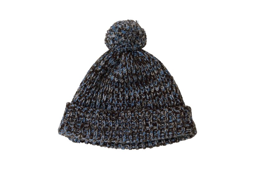 「メイデンズショップ別注。8本の糸を撚り合わせて1本の太い糸にしたカシミアで見た目も被り心地も温もり充分」