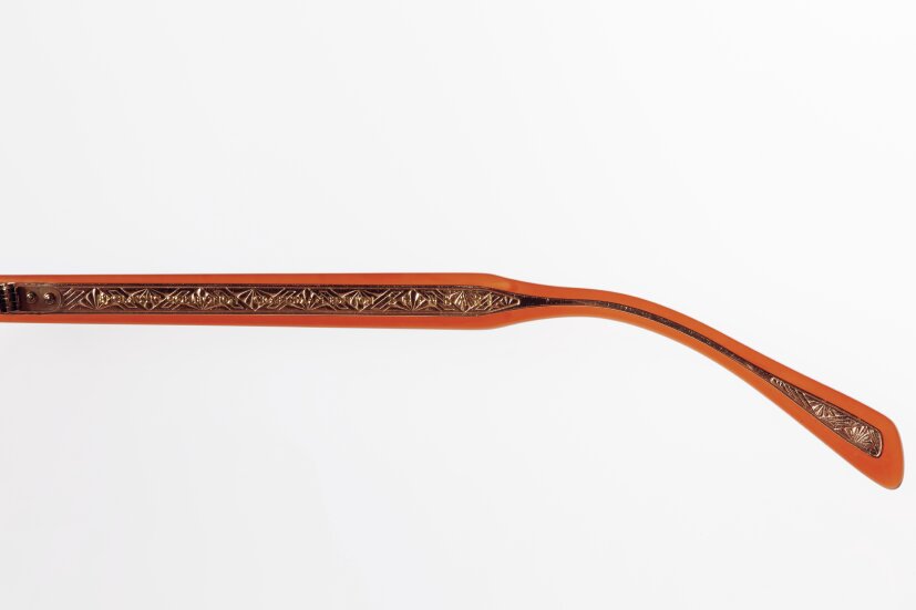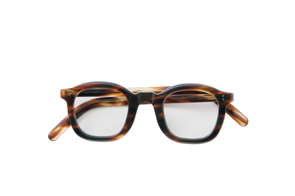アイウエアの素材としてセルロイドが多用された時代は、生地が硬いため芯を入れる必要がなかった。