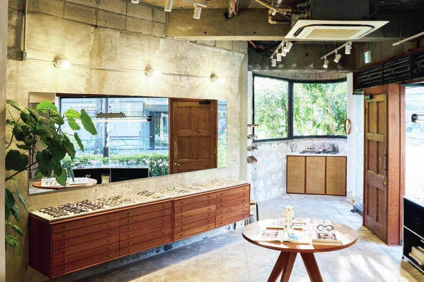 学芸大学から徒歩約4分ほどの場所に位置。さまざまなサイズを取り揃え、道具として最低限考慮すべきメガネの選び方をカジュアルに伝える。