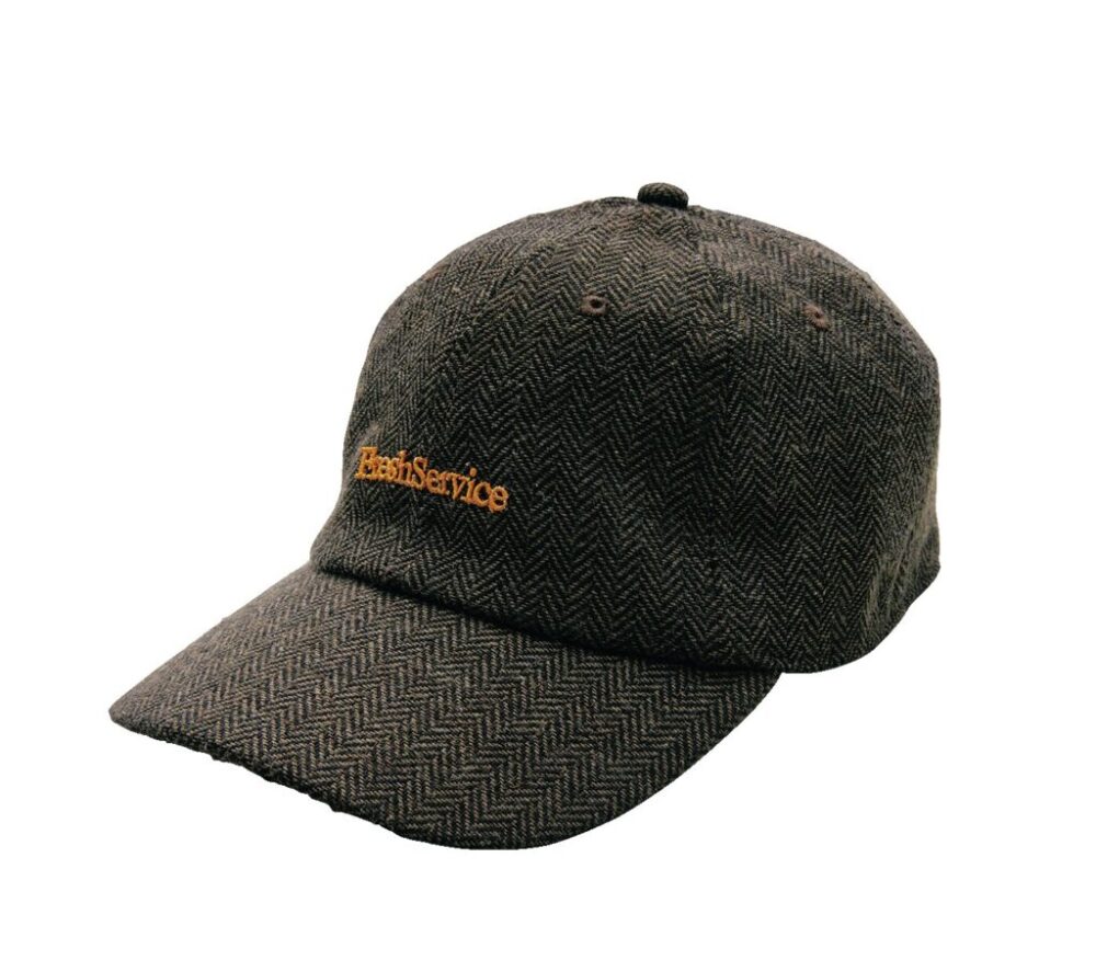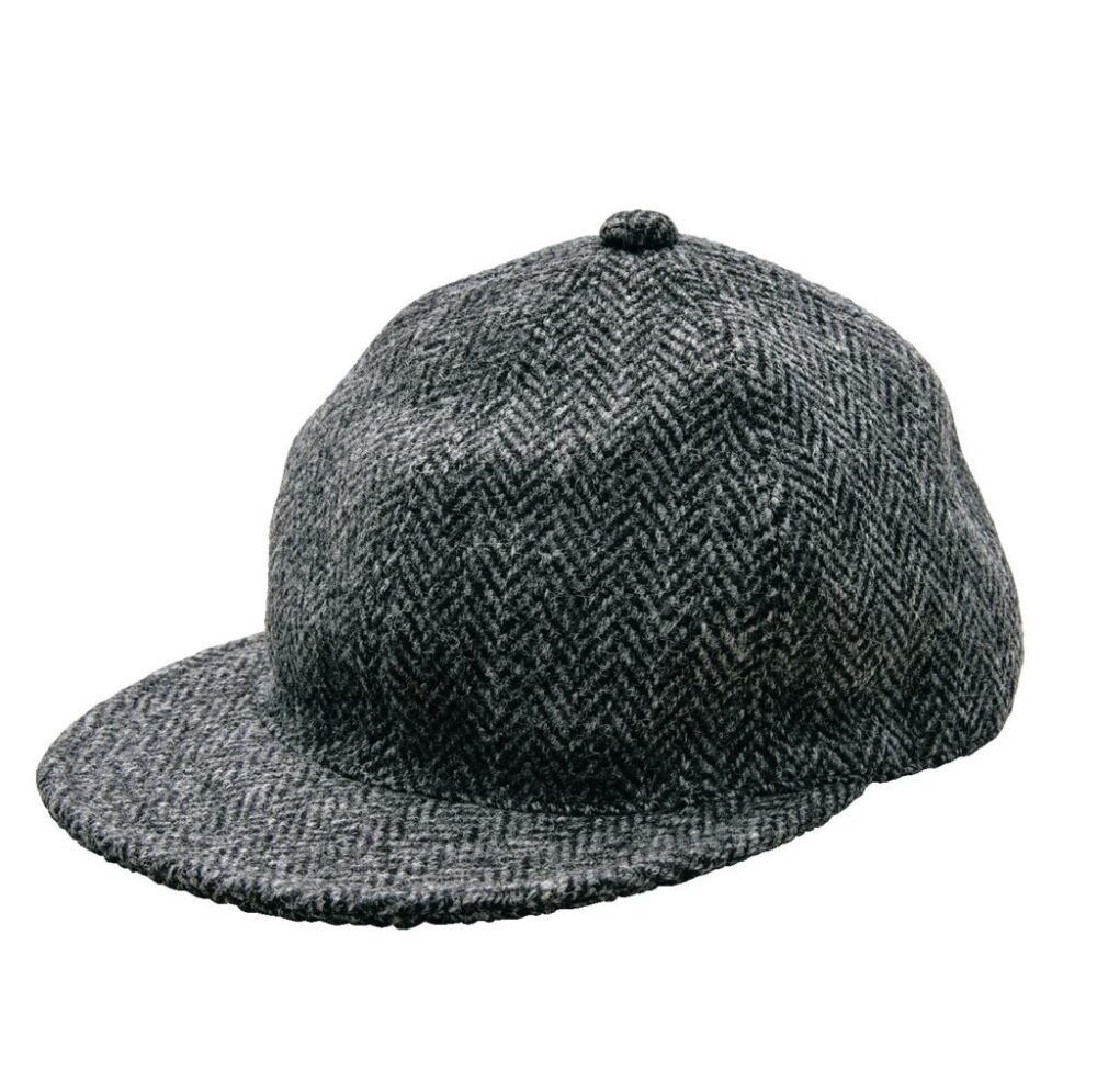 ニューヨークの帽子ブランド「ニューハッタン」のやや浅めでつばの長い型がベース。ロゴにはブランド定番のキャップとは異なるセリフ体のフォントをセレクトし、ヘリンボーンの生地と合わさってよりオーセンティックな雰囲気へと落ち着いている。7150円(フレッシュサービス ヘッドクオーターズTEL03-5775-4755)