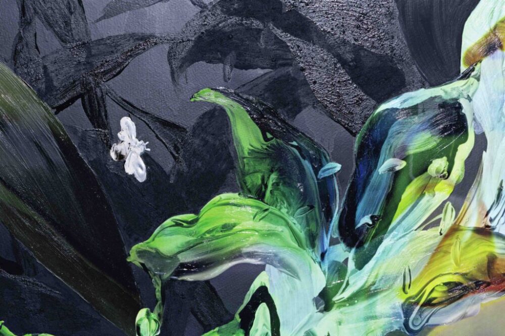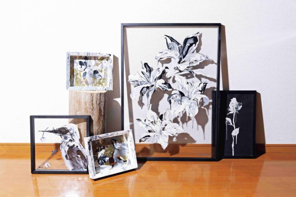 ——幼少期からの「描く」というフィールドに戻るんですね。作品を拝見すると最初は花をモチーフにしたモノクロのもので、移ろうかのようなマーブルの力強さが印象的です。今日までの他の作品群にも共通する核のようなものを感じたのですが、このスタイルに至ったきっかけはありますか?