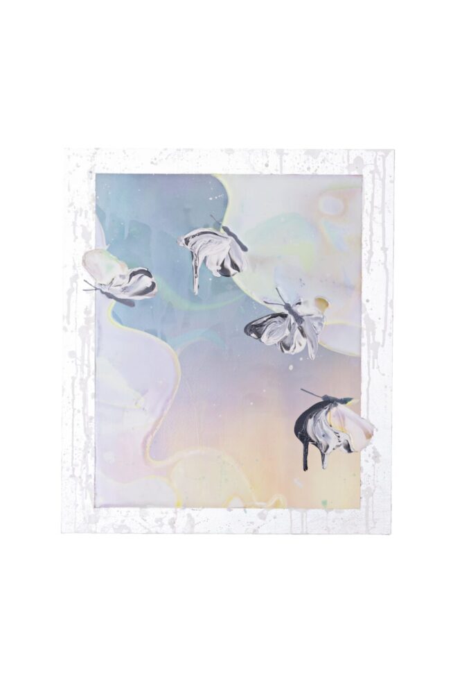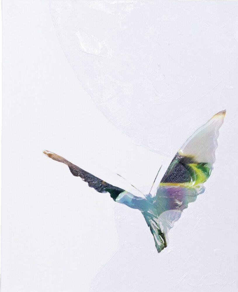色をアクリルで重ねたり、蝶やカマキリの作品では、アクセサリー作りなどに使われるレジン(樹脂)を重ねたこともありました。光沢感、瑞々しさを表現したいなと。美大で学ばず独学で描いてきたことで、柔軟に表現できているのかもしれません。