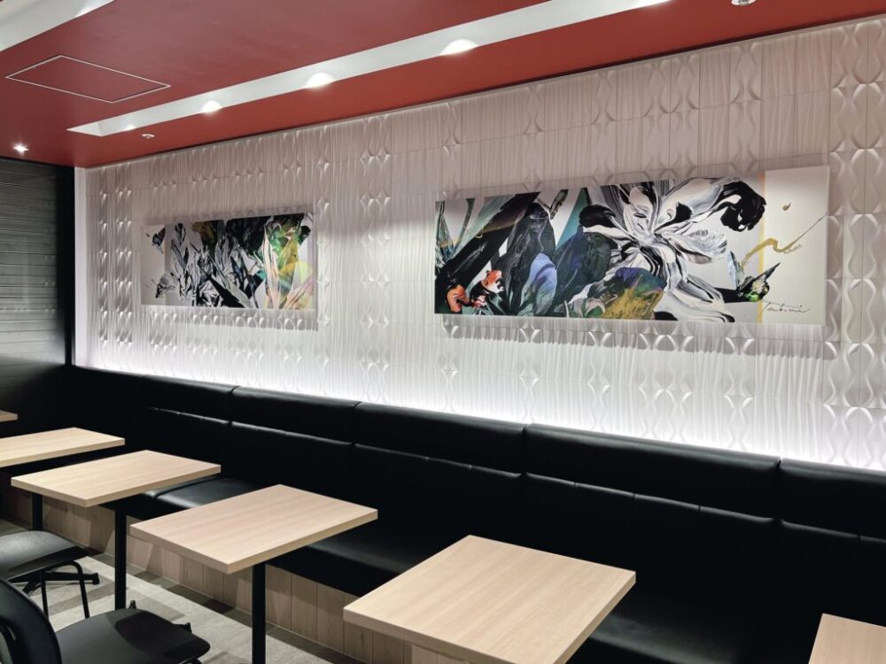 ホームセンターによく行きます。「コーナン」が私の画材屋なんですよ。一方で絵の具の面白さはずっと探っていて、その偶発性、絵の具の混ざりあいでしか生まれない表現、名前がつけられないような色を意識しています。もっと深めていきたいアプローチです。誰かに癒しや気づきを与えられるものがアートだと思うので、自分としても楽しみながら自由に表現していきたいですし、観てくれる人も自由に楽しみながら感じていただけたら嬉しいです。
