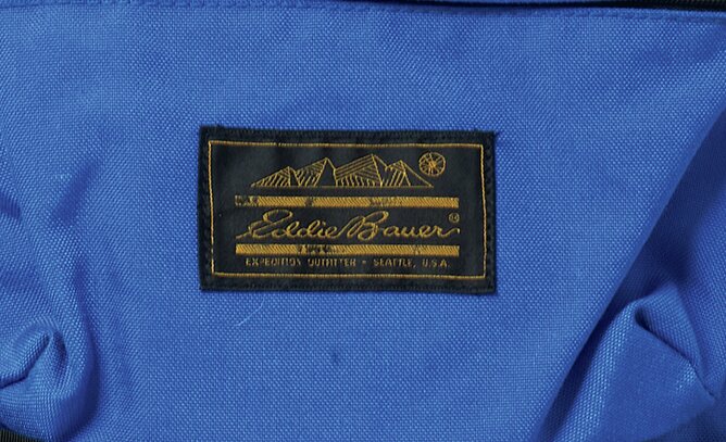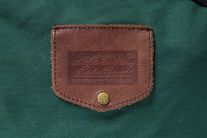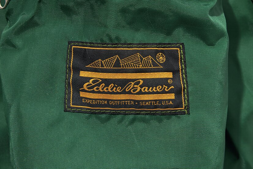 いわゆる黒タグと呼ばれる代表的なデザイン。黒地に金刺繍でブランド名が描かれ、その下に小さく「EXPEDITION OUTFITTER」の文字が入る。