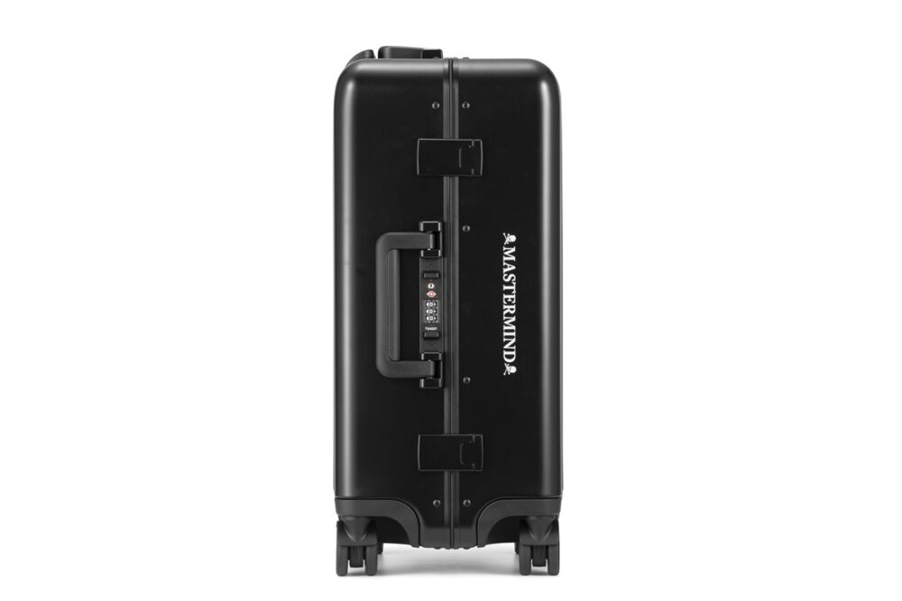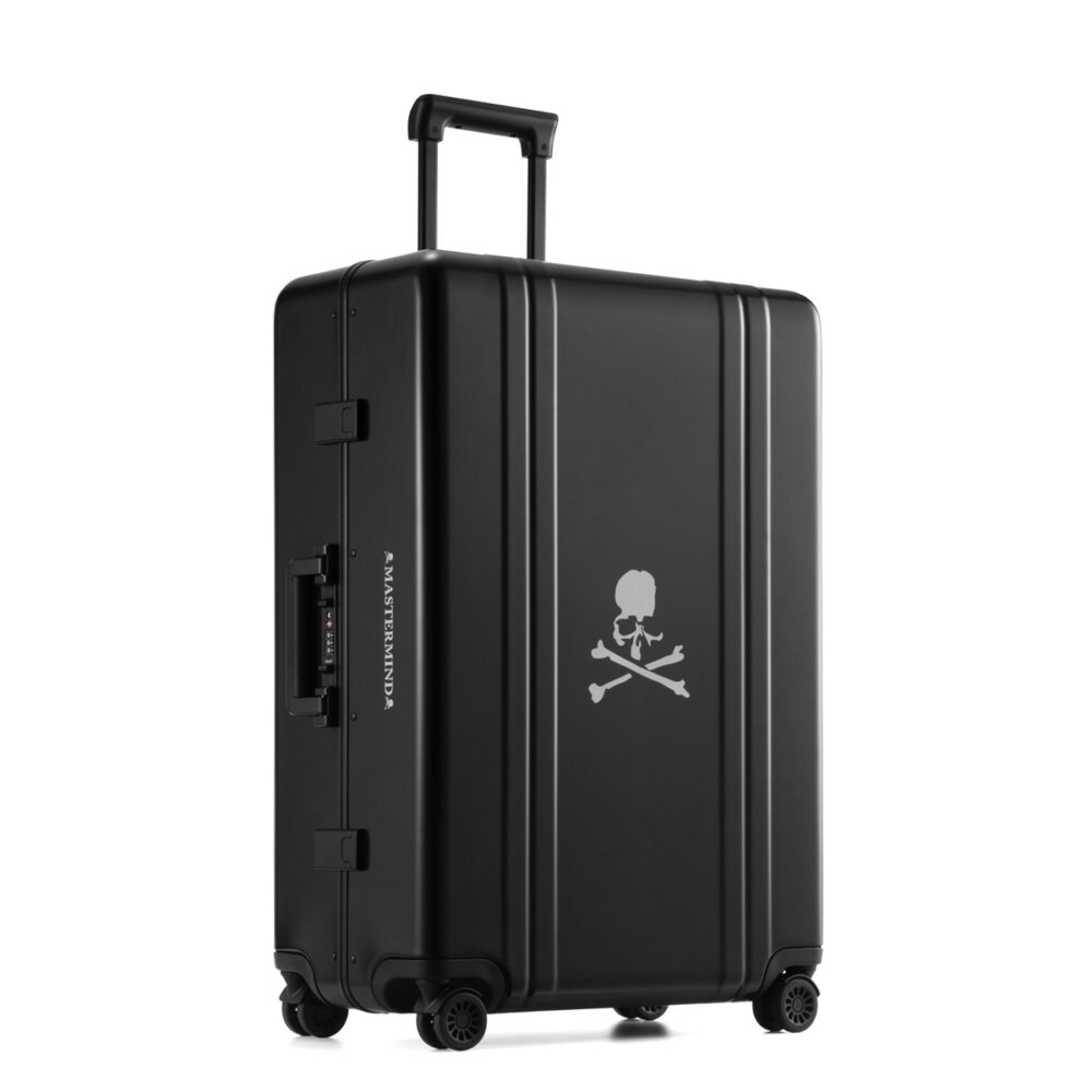 本コレクションは、ゼロハリバートンの伝統を受け継ぐ「HERITAGE LINE(ヘリテージライン)」をベースに、マスターマインドの象徴である“スカル”をあしらった特別仕様。漆黒のボディにレーザー刻印されたスカルと“MASTERMIND”のロゴが、唯一無二の世界観を際立たせている。内装やラゲージタグには両ブランドのダブルロゴを配し、細部に至るまでアイコニックなディテールを追求した。
