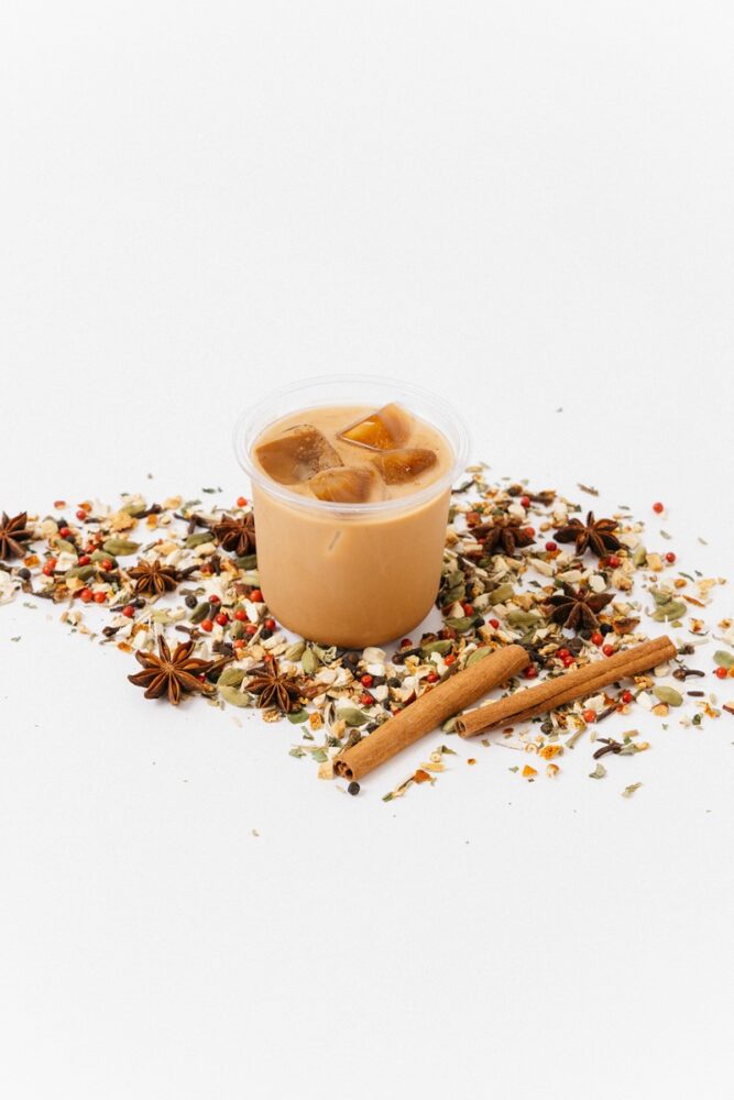 スパイスと和漢植物の知見を掛け合わせた、奥行きのある「チャイミルクティー by TYNK」。高麗人参やクロモジなど13種の和漢植物が香り、心と体を芯から温めてくれる一杯に仕上げた。※チャイティーは、「ビームス ライフ 横浜」にてホットとアイス、「ビームス カルチャート 高輪」にてアイスを提供いたします。